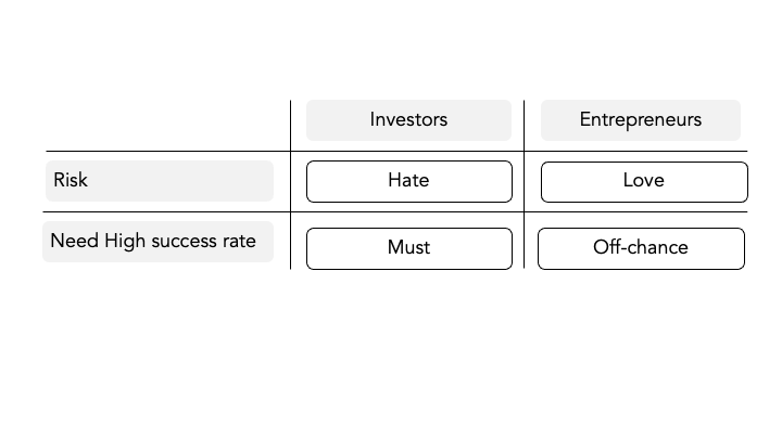 It’s essential to realize that investors, just like entrepreneurs, have their own set of backers, and their reputation and success rate are crucial. Both investors and their backers share a common dislike for risks. This often leads entrepreneurs to misunderstand the motivations of investors, as their perceptions don’t align with the reality of this risk-averse approach.